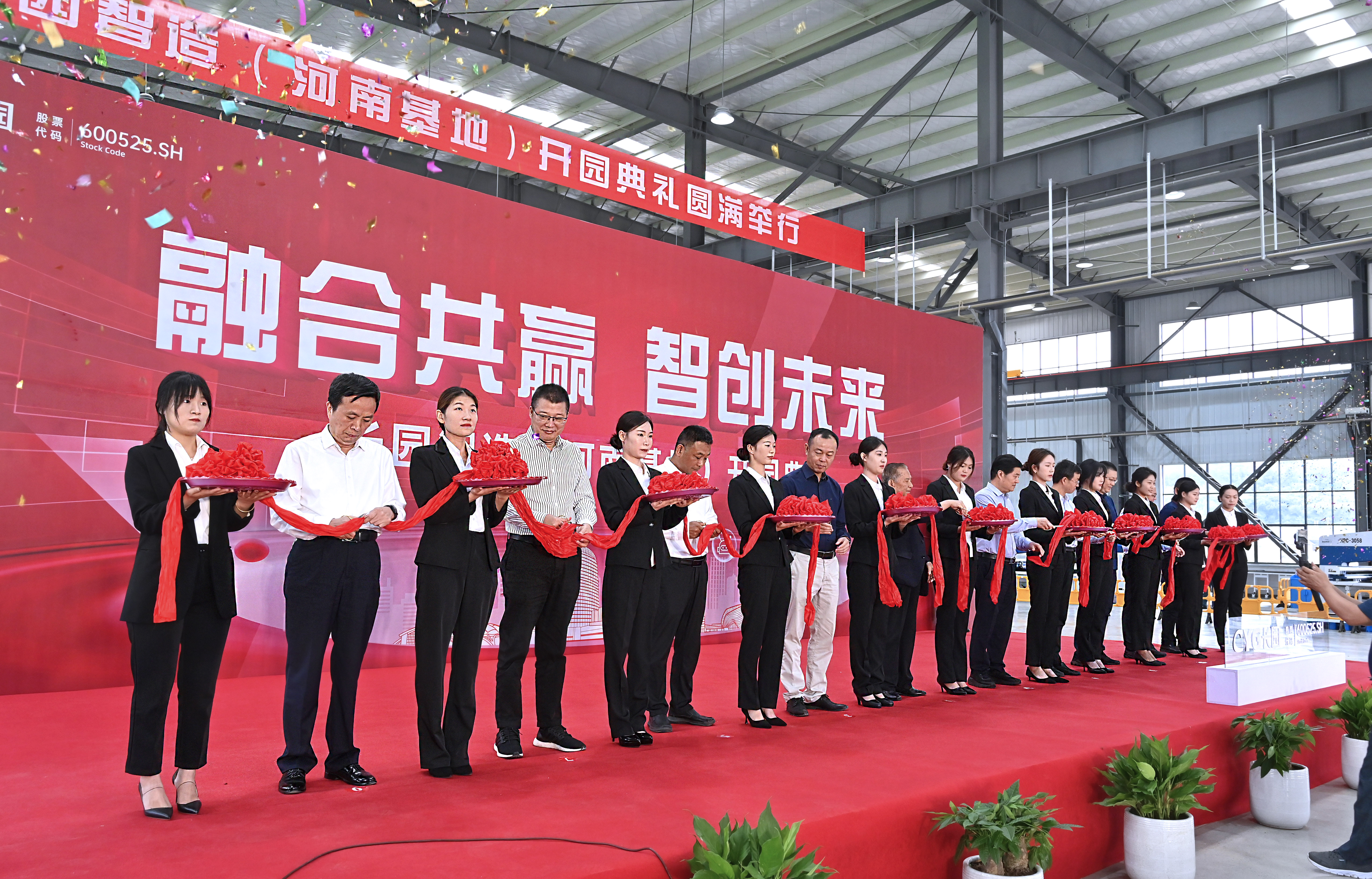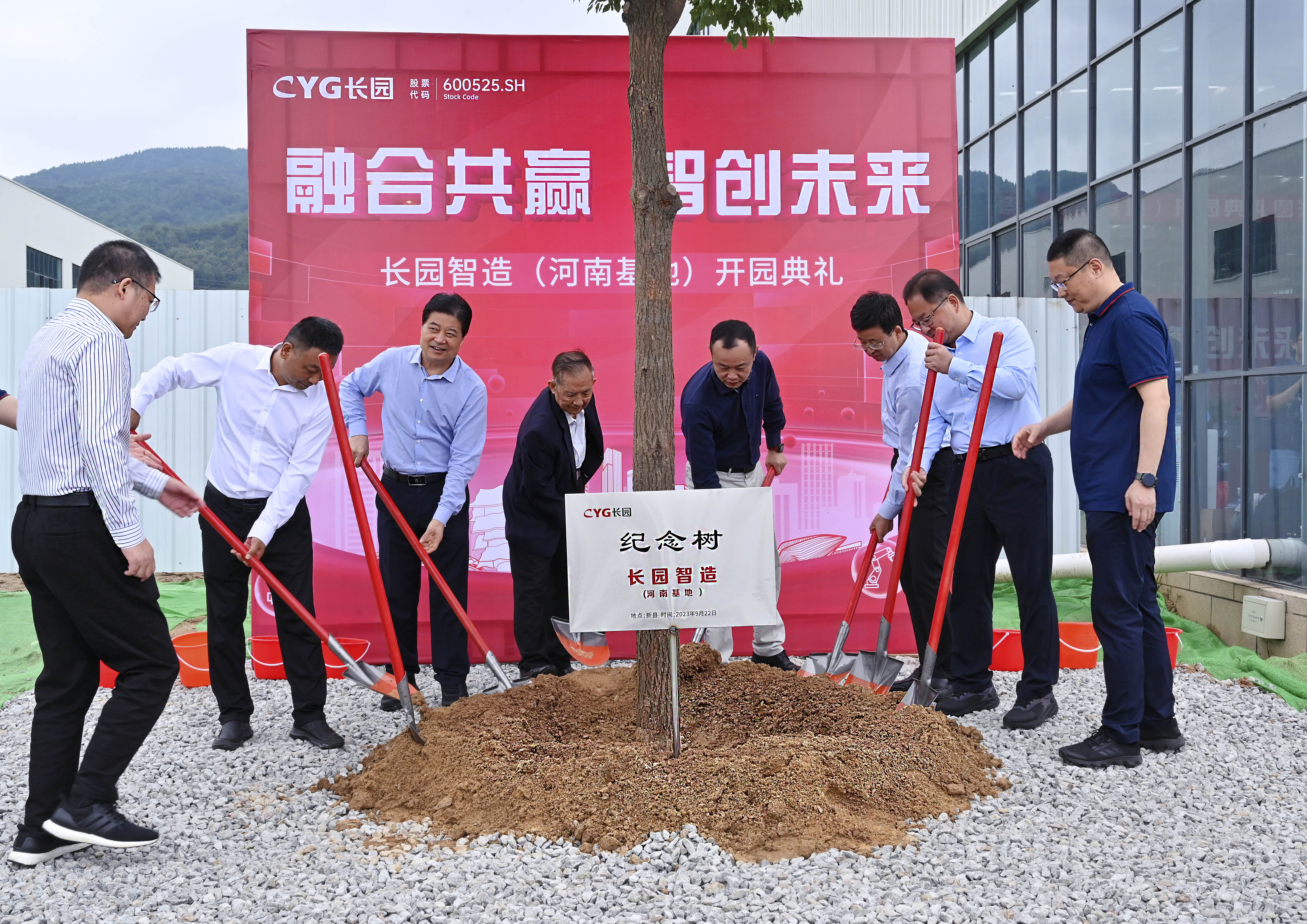 上午10點,珠海市高新區黨工委委員、區管委會副主任薛飛,格力集團黨委書記、董事長周樂偉,格力集團總裁助理、格信發展公司董事長程敏,長園科技集團董事長、總裁吳啟權,長園科技集團董事長特別助理朱曉軍,長園智能裝備總經理熊勝輝共同為儀式進行剪彩并在基地種下一顆香樟樹以作紀念,香樟樹枝繁葉茂,四季常青,寓意著長園智造(廣東基地)必將像香樟樹一樣生命力頑強旺盛、扎根高新區繁榮生長,成為高新區里的一棵參天大樹。植樹添綠共譜新篇,長園的發展邁出了又一關鍵的里程碑。